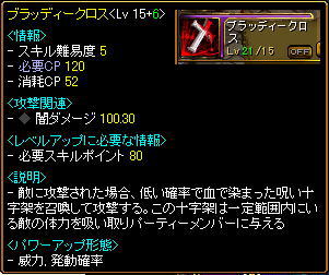 →ディープスロウ(18)→ブラッディークロス(1)到達レベル125