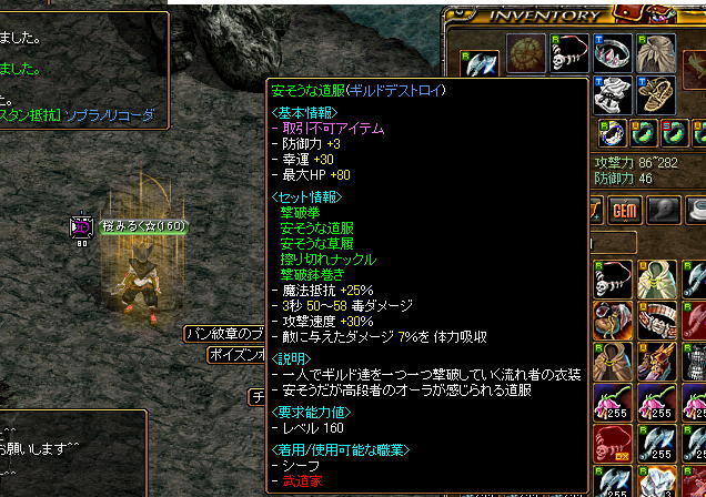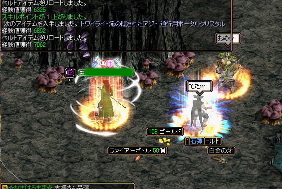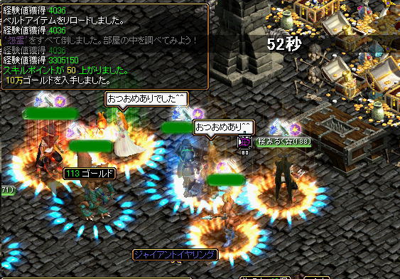 検証ではレベル500と300くらいののシフ・武道さん2人に足止めしてもらったりDFしてもらったりして、フルボッコにしてもらいました^^b