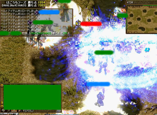 衝突して早々お相手様の氷雨アチャさんと青き玉子様さんのドラツイとマップの関係?でPCが重くなり、いきなりフリーズしそうになるという激しい衝突?wの中、アッキーナさんとヘルミオネさんが中心に特攻しつつ全員がポイントを稼いでいました。