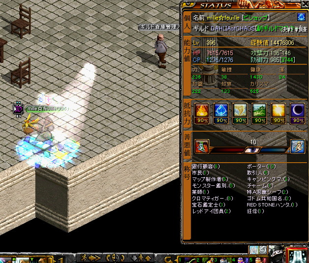 全身スキル装備の状態です。力が多いのはGV用のDX装備の関係で振ってあります。知識が高いのは光ペットの知識+の恩恵とGV抵抗指にダブリンLxを付けたかったのでちょっと振ってあります。