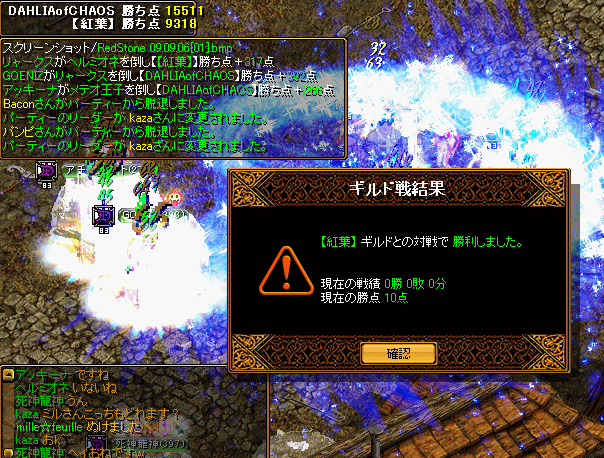 見たままのWIZさん1、BISさん2、戦士さん1、シフ武道さん2、プリリトル?さん2、ネクロ悪魔さん1、剣士さん2、アチャさん1、ランサさん1の2PTで確かTOP400~410だったような気がします・・・