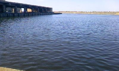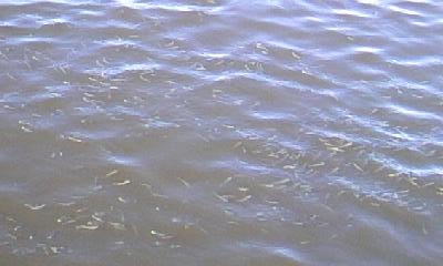 河豚の大群ですがよく見ると網ですくえば取れそうなくらい30センチ以上の大群のボラがいました。
