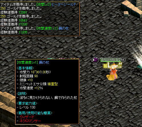 最近放置ですがたまにWIZで遊びたくなるのでたまに狩ってます。エンヘイ・水幕・霧・トルネードシールド・メテオ・フォーベガ・チリ・テレポをマスして取りたいスキルが特に無いので犬化計画中です♪