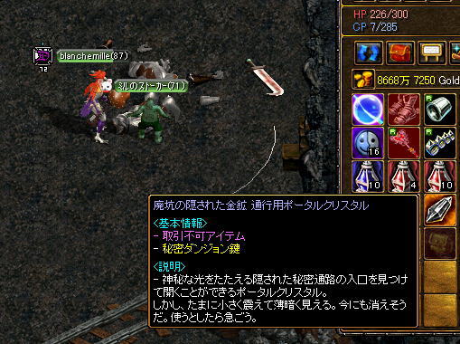 拾った物はホワイトスノウ3個とスモールポーション等の回復系、エンチャント文書、帰還、などなど・・・