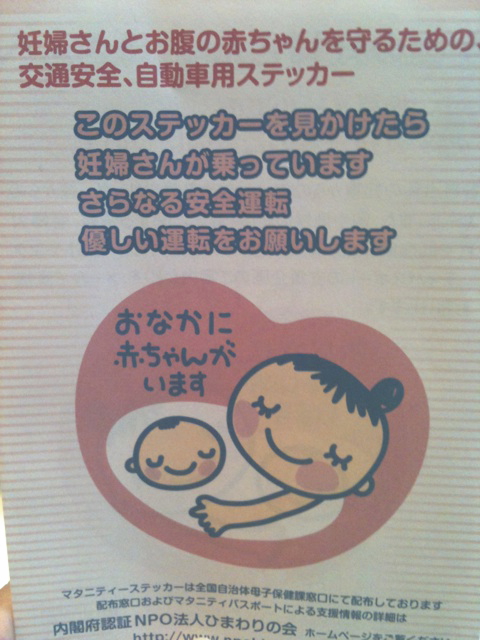 黄色と黒の「BABYなんとか~」って赤ちゃんの絵が書いてあるステッカーを車に張っている人を見たことはありますが、マタニティーバッジと同じ絵のステッカーは初めて見ました。