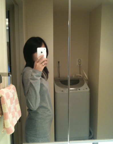今まではちょっとお腹が出てる人にしか見えませんでしたが、最近はやっと妊婦っぽく見えるようになりました。